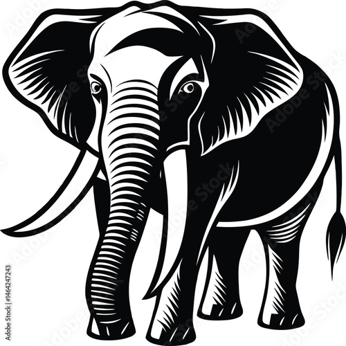 Majestic Elephant with Tusks - Black and White Vector Illustration