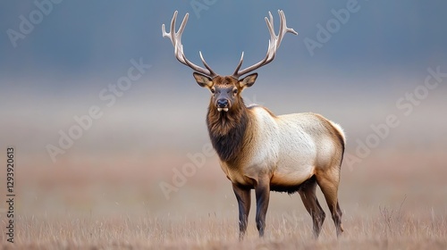 elk, cervid, wildlife, nature, autumn, meadow, landscape, animal, majestic, portrait, forest, brown, beige, cloudy, foggy, horn, wild, grass, standing, mammal, bighorn, large, photo, conservation, mammal, antler, savanna, grass-land, plain