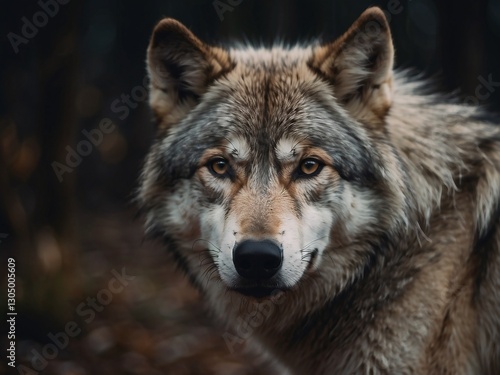Majestic Grey Wolf Portrait in Natural Forest Habitat - Wildlife Photography of a Powerful Predator in North America