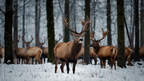 Majestic Horned Deers A Captivating Glimpse into their Natural Forest Habitat