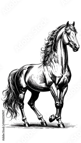 horse, animal, equine, black-and-white, drawing, illustration, art, vignetting, graphic, design, profile, silhouette, beauty, strong, powerful, majestic, elegant, freedom, nature, wildlife, sketching, artwork, line art, vintage, classic