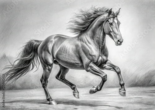 Majestic Horse Sketch: Rule of Thirds Composition, Graphite Drawing