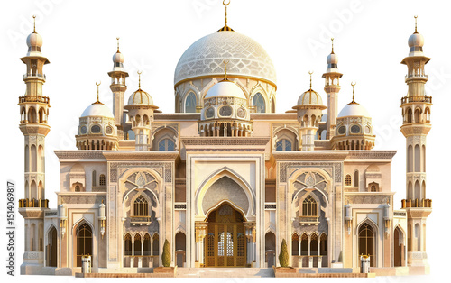 Majestic Islamic Palace Showcasing Intricate Architectural Mastery Isolated on Transparent Background