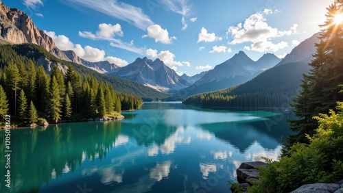 lake, mountain, majestic, serene, harmony, teal, mirror, cloud, gentle, slope, exploration, calmness, peace, solitude, adventure, inspiration, calmness, picturesque, grandeur, hiking, camping, landscape, wildlife, alpine, relaxation, meditative