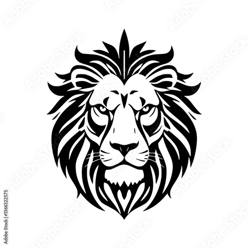 Majestic Lion Head: A bold, black and white illustration captures the strength and regality of a lion's portrait, highlighting its intense gaze and striking mane.