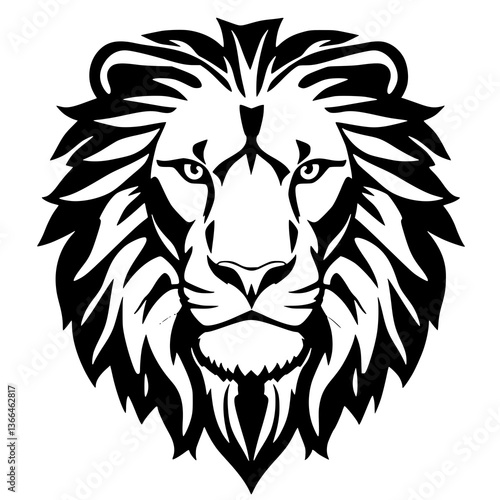 Majestic Lion Silhouette: A striking black and white illustration of a lion's head, showcasing its powerful presence and regal features, ideal for design projects.