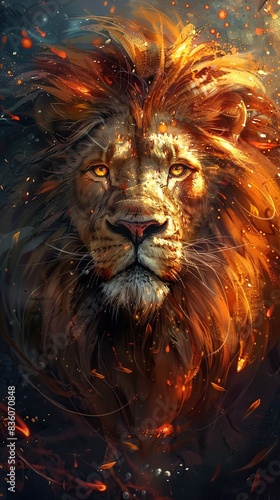 Majestic lion with a fiery mane, symbolizing strength and royalty