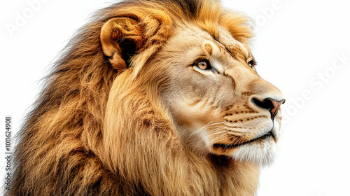 portrait, majestic, lion, lush, mane, white, background, showcase, king, jungle, tough, brave, carnivore, man, wild animal, profile, animal portrait, predator, wildlife, closeup, fierce, animal kingdom, nature, wild, big cat, looking away, photo, felino, king of the jungle, wilderness, savanna, powerful, beauty, closeup, head, pride, wildcat