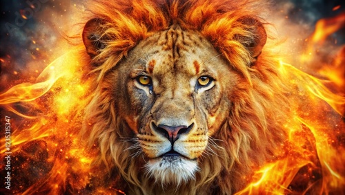 lion, fire, double exposure, animal, photo, nature, wildlife, flames, predator, strength, power, courage, bravery, majesty, ferocity, intensity, untamed