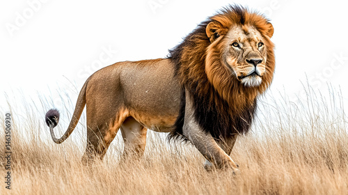 Majestic Male Lion in Golden Grassland