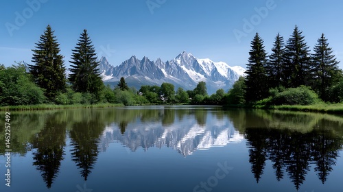 Majestic Mont Blanc Mirror Reflection in Alpine Lake.