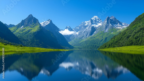 mountain, lake, nature, landscape, scenic, water, green, blue, white, snow, calm, serene, peaceful, grand, beautiful, photo, image, travel, tour tourism, environment, adventure, wildlife, sky, vegetation, hill, peak, rock, summer, background, panorama, vista, horizon, still, tranquil, idylli, picturesque, composition, photo, stock, royalty, free, commercial, licence