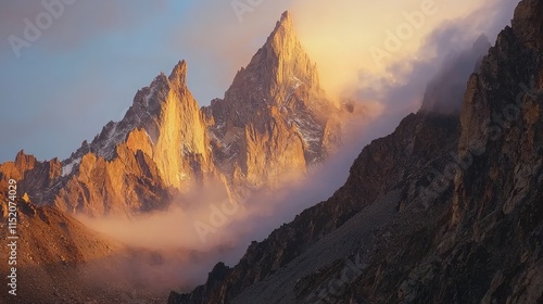 mountain, peak, sunset, sunrise, light, cloud, mist, fog, rock, stone, nature, landscape, scenery, panorama, view, majestic, gold, dramatic, awe, beauty, amazing, incredible, spectacular, breathtaking, stunning, vibrant, colourful, outdoors, wilderness, environment, travel, adventure, exploration, climbing, hiking, terrain, geology, range, high, altitude, infused, rocky, huge, huge, scenic, picturesque, summit, vale