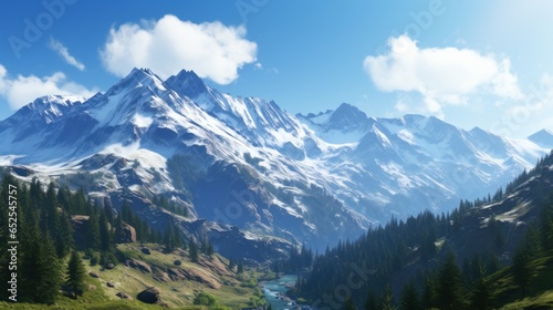 Majestic Mountain Peaks, Snow Capped Summits and Alpine Meadows Game Art