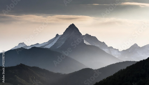 mountain, alps, sunset, nature, scenery, silhouette, peak, landscape, terrain, sky, horizon, light, adventure, travel, majestic, beauty, elevation, rock, cloud, wilderness, hiking, exploration, dusk, natural, serenity, environment, formation, distance, calmness, geology, atmospheric, scenic view, earth, panorama, mountain chain, soft light, evening, remote, breathtaking, shadow, sunlight, peaceful
