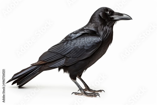 Majestic Raven Profile View Striking Black Feathers Isolated on White Background