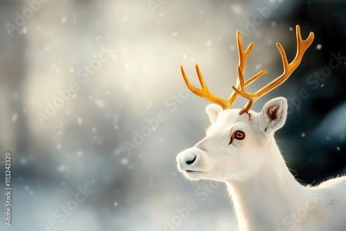 reindeer, gold, antler, snowy, wildlife, animal, nature, winter, portrait, forest, beautiful, serene, outdoors, mammal, horn, white, snow, peaceful, fauna, wilderness, aethereal, elegant, closeup, photo, natural, habitat, cold, tranquil, majestic, feature, wonderland, snowflake, soft, light, graceful, wild, northern, arctic, seasonal, environment