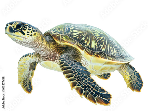 Majestic sea turtle gliding gracefully, highlighting its detailed shell and fins.