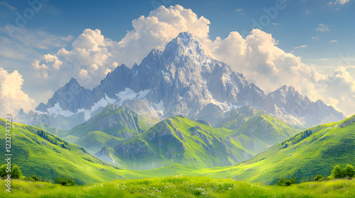 mountain, range, snow, vale, green, landscape, nature, travel, scenery, majestic, peak, hill, cloud, sky, sun, summer, scenic, wilderness, beauty, photo, background, panoramic, vista, view, image, photo, picture, scene, artwork, art, digital, graphic, design, wallpaper, poster, print, tour tourism, adventure, explore, expedition, journey, destination, holiday, vacation, alps, mountain