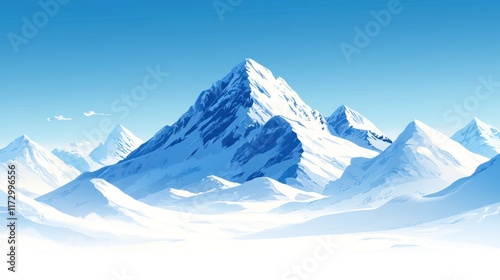 mountain, snow, peak, range, winter, landscape, nature, scenery, sky, blue, white, cold, ice, hill, summit, alps, arctic, highland, elevation, vista, view, scenic, serene, tranquil, majestic, grand, impressive, beautiful, stunning, breathtaking, panoramic, wilderness, adventure, travel, exploration, climate, environment, geography, geology, horizon, cloud, glacé, rocky, texture, background, illustration