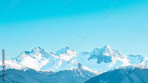 Majestic snow-capped mountain range under clear blue sky, showcasing the breathtaking beauty of towering peaks, pristine wilderness, and serene natural landscape. High resolution, perfect for nature,