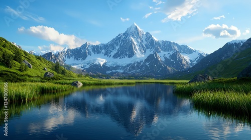 Majestic Snowcapped Mountain Reflecting in a Serene Lake