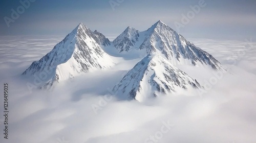 Majestic Snow-Capped Peaks Surrounded by Soft Cloud Blanket
