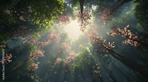 Majestic Sunlight Rays Piercing Through Lush Woodland Foliage