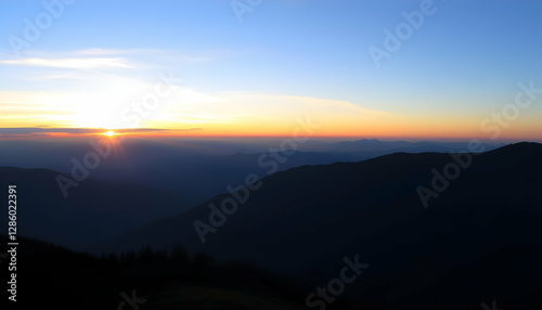 Majestic Sunrise Over Mountain Range Serene Landscape Breathtaking View Nature Photography