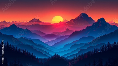 Majestic sunset over mountains national park landscape photography serene environment wide-angle view natural beauty exploration