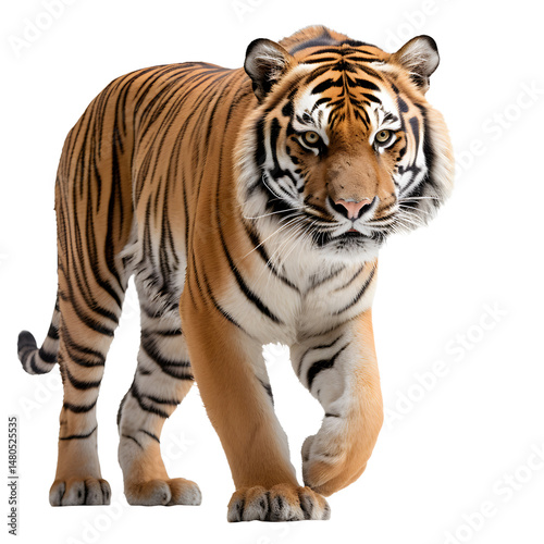 tiger, big, cat, animal, felino, wild, wildlife, predator, hunter, stripes, striped, orange, black, fur, mammal, nature, powerful, strong, majestic, fierce, portrait, walking, looking, isolated, background, transparent, carnivore, zoo, bengal, asian, siberian, white, safari, jungle, tigris, animal, big cat