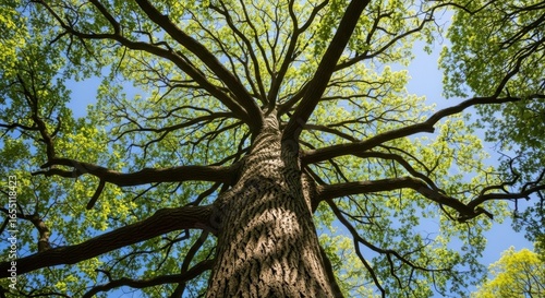 tree, nature, forest, leaf, branch, canopy, sky, green, outdoors, wood, foliage, plant, growth, season, summer, spring, sunlight, natural, organic, landscape, scenic, view, perspective, looking, up, underneath, pattern, texture, bark, calmness, peaceful, environment, ecosystem, life