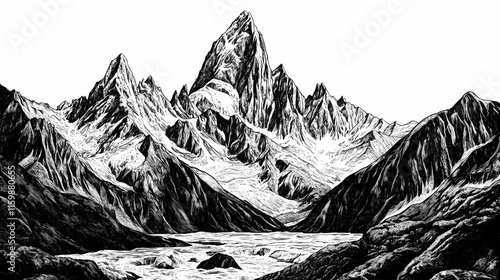 Majestic view of mt fitz roy towering over los glaciares. Glaciered. Illustration