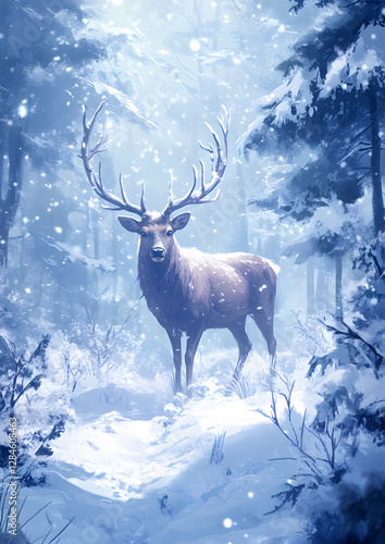 Majestic Winter Deer with Antlers in Snowy Environment Image
