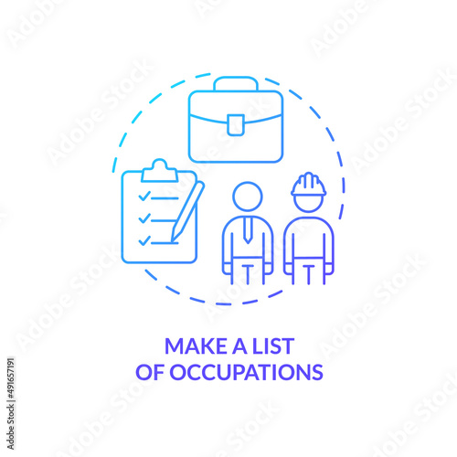 Make list of occupations blue gradient concept icon. Step to find right occupation abstract idea thin line illustration. Planning future. Isolated outline drawing. Myriad Pro-Bold font used