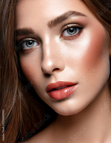 woman, beauty, face, hair, fashion, make-up, model, eye, lip, closeup, glamour, skin, make-up, closeup, coiffure, eye, studio, care, natural, skincare, clean, red, style, person, cosmetic