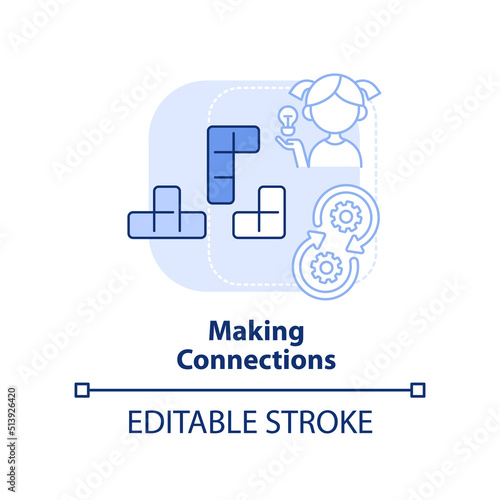 Making connections light blue concept icon. Basic life skill for kid abstract idea thin line illustration. Solve problems. Isolated outline drawing. Editable stroke. Arial, Myriad Pro-Bold fonts used