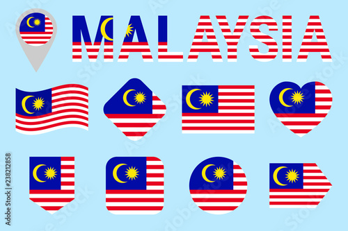 Malaysia flag vector set. Different geometric shapes. Flat style. Malaysian flags collection. can use for sports, national, travel, geographic design elements. isolated icons with state name.