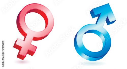 Male and female symbol, set of two blue and pink icons, gender symbols.