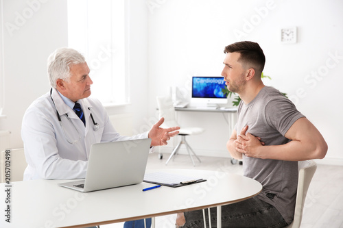 Male doctor working with patient in clinic. Cardiology consultation