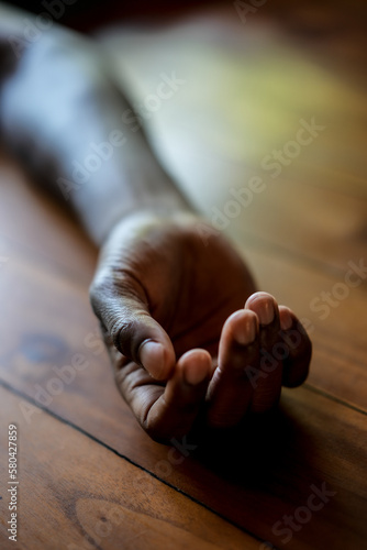 Male hand black on the ground floor intimate sensual touch skin fingers