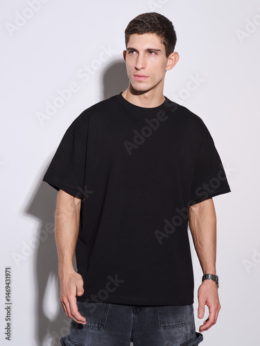 person, people, casual attire, photogenic, guy, model, smiling, shirt, 1, smile, boy, fashion, standing, man, face, t-shirt, studio, looking, lifestyle, black, student, businessman, isolated, confident, expression