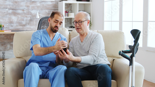 crutch, nursing home, nurse, senior, retirement home, lifestyle, bedchamber, bed, female, white, male, bearded, lying, retired, phone, indoor, relaxing, home, old, elderly, mobile, mobile phone, blanket, technology, woman, adult, retirement, selfie, resting, service, stethoscope, support, peaceful, 60s, room, mature, medicals, apartment, beautiful, caretaker, caring, caucasian, giving, happy, house, household, enjoying, man, sofa
