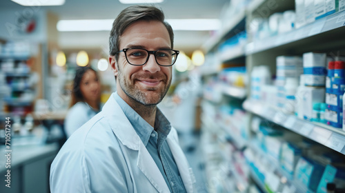 apothecary, pharmacy, health care, medication, professional, man, smiling, drug, prescription, goggles, store, shelf, retail, service, medicals, health, assistance, consultation, chemist, shop, laboratory, coat, smile, adult, portrait, male, woman, assistant, care, medicine, workplace, uniform, happiness, client, career, well-being, occupation, pharmaceutical, friendly, expertise, provider, modern, clinic, hospital, pharmacology, technician