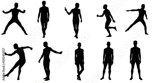 Male Silhouettes in Various Poses - Collection of ten diverse male silhouettes showcasing dynamic poses, perfect for design, animation, or illustration projects