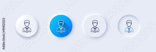 Male User line icon. Neumorphic, Blue gradient, 3d pin buttons. Profile Avatar sign. Businessman Person silhouette symbol. Line icons. Neumorphic buttons with outline signs. Vector