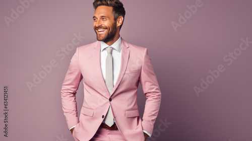 male wearing suit fashion lifestyle cheerful on the pastel background