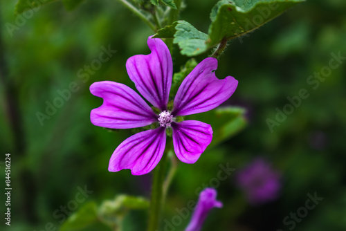 Mallow flower at the side of a road, malva sylvestris