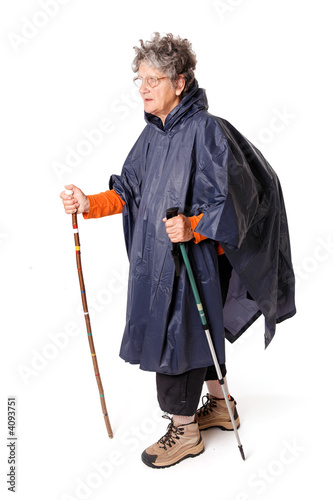 hike, senior, walk, pension, activated, rain, protection, momentum, action, old, grandmother, hiker, hiker, trekking, exercise, hike, path