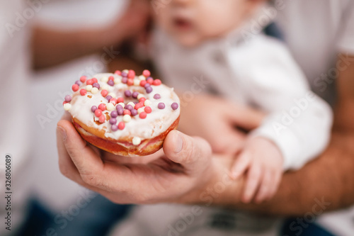 kitchen, food, dish, beige, white, frying pan, donut, pan, stove, tabletop, family, lunch, dinner, breakfast, milk, calorie, pie, flower, mug, plate, teapot, faucet, delicious, diet, children, mother, father, table